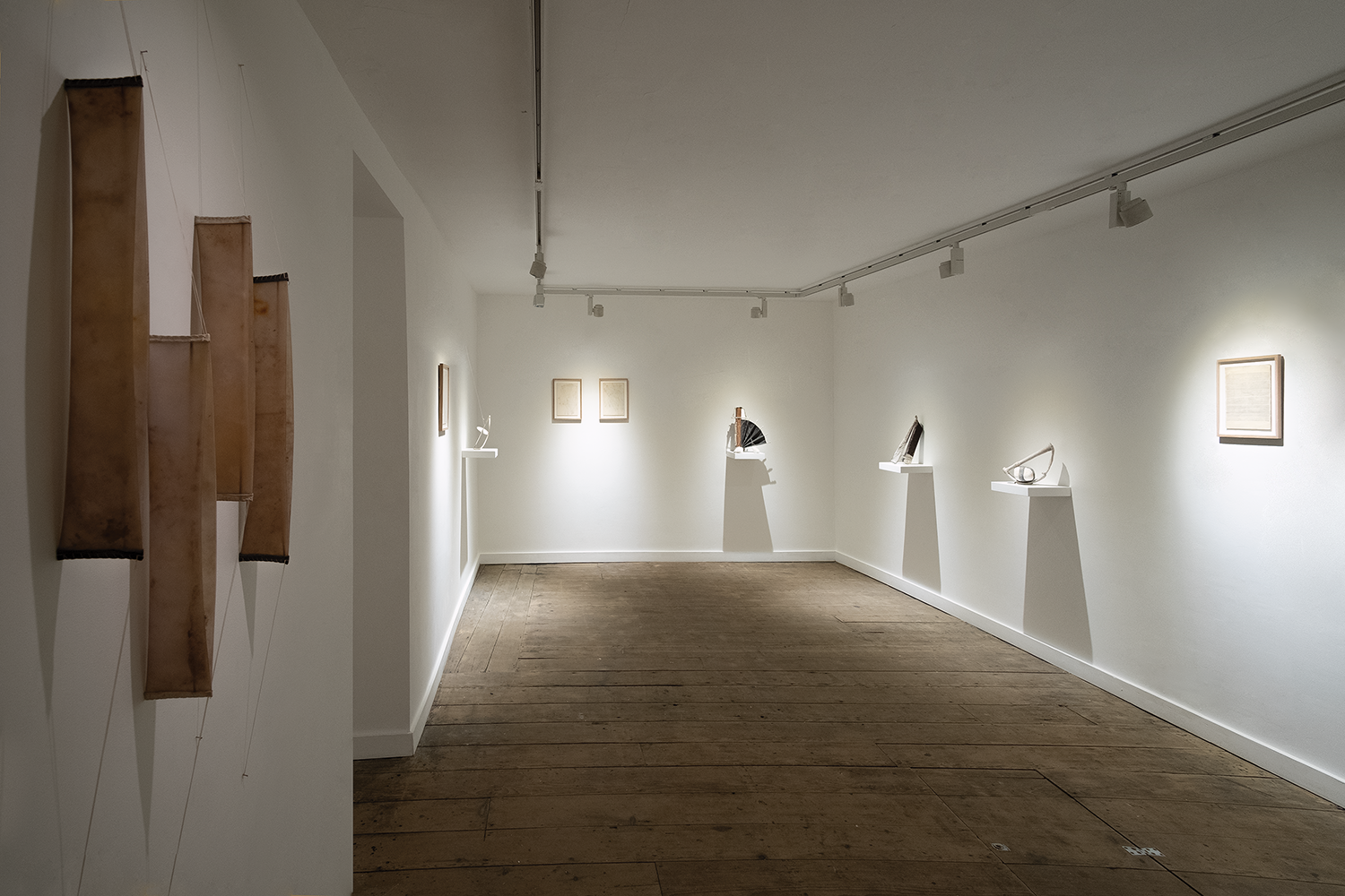The work occupies thresholds. Surfaces are stitched, marked, layered and worn; objects become instruments, not only of sound or sight but of passage. Some respond to the land, some hum with memory, others simply await the listening. Here, absence is presence, darkness is ground, and matter is animated by the invisible. Through this alchemy of making, the personal becomes universal...”